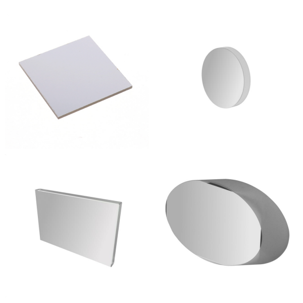 <h1> Mirrors </h1> <p> Optical Mirrors are used in optical instruments to reflect light for various applications. Types include aluminum, dielectric, gold, and silver. These can be further filtered by optic size, shape, wavelength, angle of incidence, and more. </p> <p>