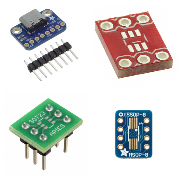 <h1> Adapter, Breakout Boards </h1> <p> Products in this family provide increased convenience of access to the electrical contacts of a connector, integrated circuit, or similar device by providing interconnection between a component placement area (typically for a fine-pitch, surface mounted integrated circuit) and an interconnect area typically having a much larger distance between pin centers. A common application is accommodating the use of solderless breadboards as a prototyping method for components that are not available in breadboard-compatible packaging. </p>