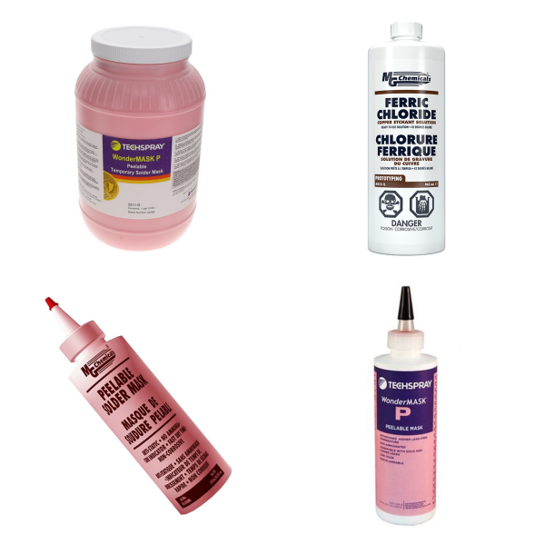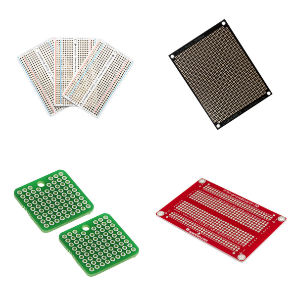 Prototyping and manufacturing products include materials and tools used to assemble small quantities of electronic circuits for development, research, repair, or similar purposes. Examples include solderless breadboards and adapters (for use with surface mount integrated circuits), perforated and non-perforated circuit board materials, and tools for producing printed circuit boards using chemical or mechanical processing techniques.